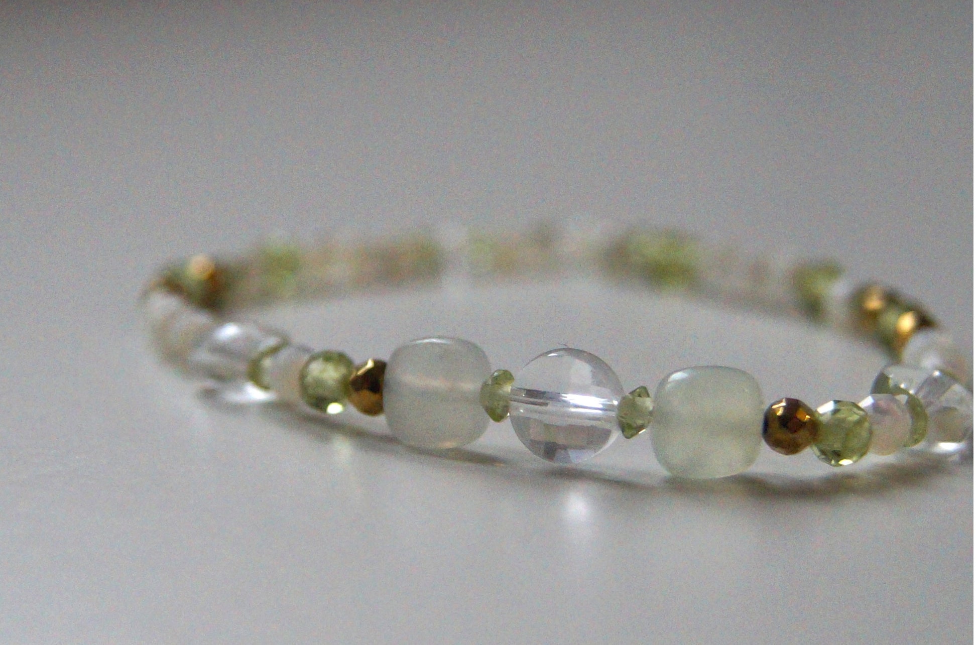 - Composition : Jade, Péridot, Cristal de Roche, Nacre, Hématite